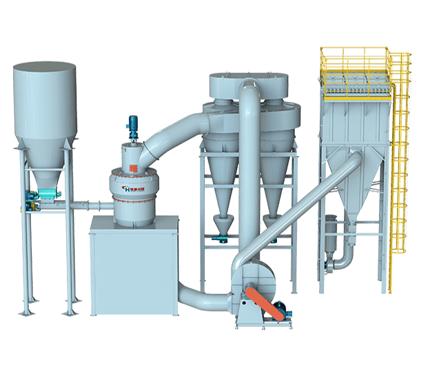 开路系统:物料通过给料机定量进入进料管道,与系统进风混合均匀后,由下端入料口进入分级机,符合粒径要求的细颗粒随气流进入脉冲收集器,粗颗粒夹带部分细颗粒沿筒壁下降至二次风处,经二次风的淘洗作用,使粗细颗粒分离,细颗粒上升至分级区进行二次分级,粗颗粒下降至下料口排出。